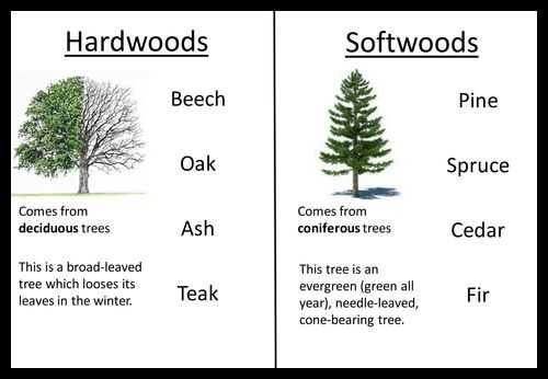 Abajo está un enlace a una página de wikipedia listado tiempo madera son duras o blandas.