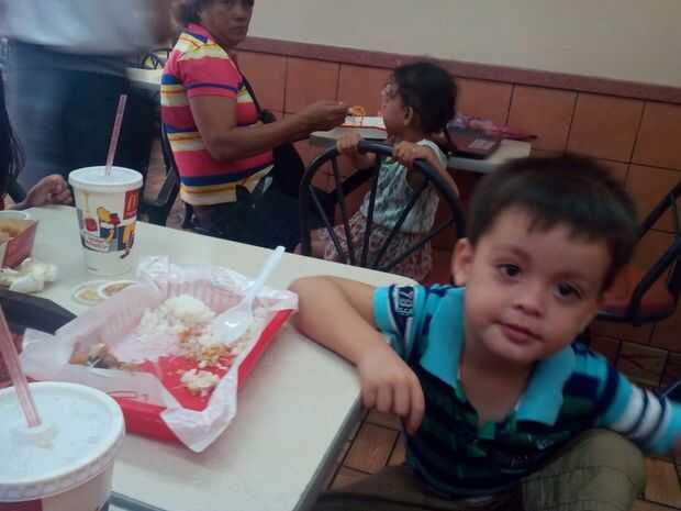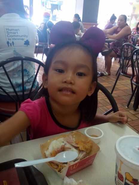 Primero compré a cuatro temas de prueba algunos McLunch. Dos eligieron hamburguesas, mientras que los otros dos comparten un "McPOLLO 2 pieza con bola de arroz especial." Entonces cerca observaba el tiempo alarga efecto de ver 2 pequeños niños comer su pollo y arroz una pequeña cucharada de bola comida a la vez.