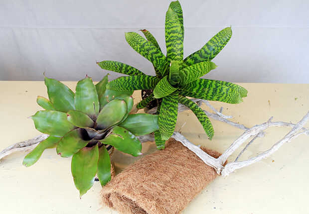 Esta pieza de madera puede ser familiar para usted porque usé un año o 2 hace para crear una obra viviente de arte con plantas suculentas y plantas de aire. Esa pieza fue desmontado un tiempo atrás y así pensé que era tiempo de volver a utilizar la rama para otro proyecto. He visto "bromelia los árboles" en varios shows y también por Internet así que esta es una versión mini de eso. Yo sólo adjunto 1 bromelia, mi Neoregelia, pero fácilmente podría haber usado más. Un pedazo de madera tan delgada como esta uno se vería spiffy con 5 o 6 bromelias más pequeño (el tamaño del bote 4) creciendo en sus rincones.