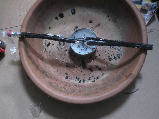 Después de extinguir el fuego toma el cuchillo y empezar a pelar lejos el carbón a del grafito. Aunque la mayor parte del carbón debe salir fácilmente, si cualquier gran pieza no sale casi de inmediato simplemente volver a encender el que sección un poco debe aflojar para arriba. Ya que el lápiz está mojado establecer una sección llamas otra vez tomará unos momentos, pero si sólo sigues esa parte fuego largo suficiente que debe pronto encender de nuevo.