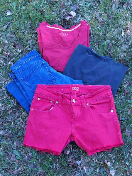-Viejos pantalones vaqueros, pantalones cortos, camisetas (principalmente algodón)