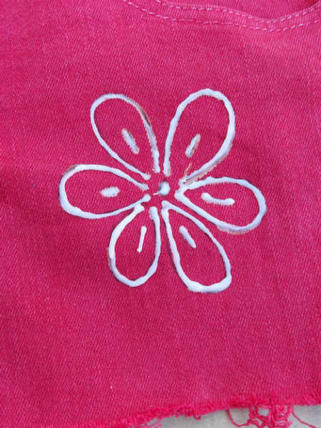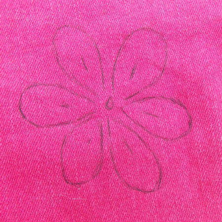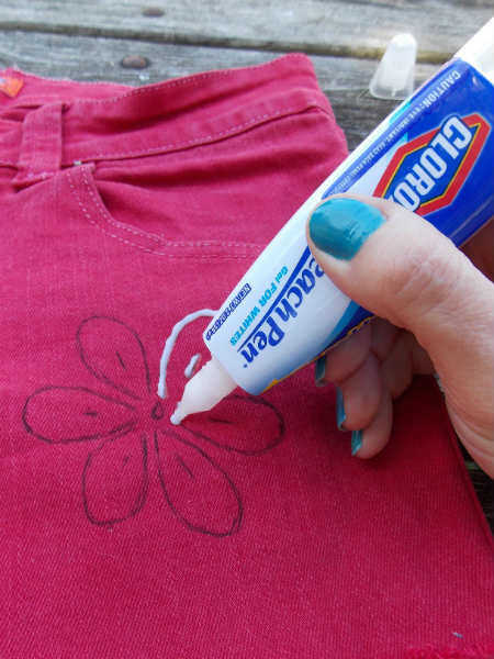 En primer lugar, con mi lápiz, dibujó el contorno de una flor a un lado de los cortos. Cuando yo era feliz con él, seguí la línea con el lápiz blanqueador.