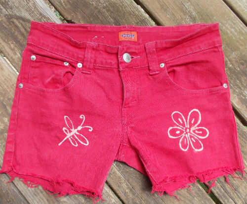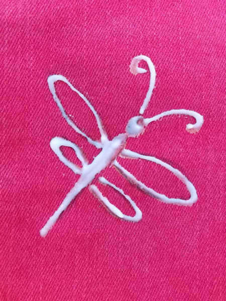 Quería poner un par de diseños simples frente al estos shorts rojos. Para la inspiración y diseño, cavé una de nuestras toallas de playa que tiene flores y Dragón vuela en él. Puedes hacer tu dibujo en un papel primero. También, es una buena idea para dibujar con el lápiz blanqueador en retazo para conseguir una sensación para el flujo del gel blanqueador.