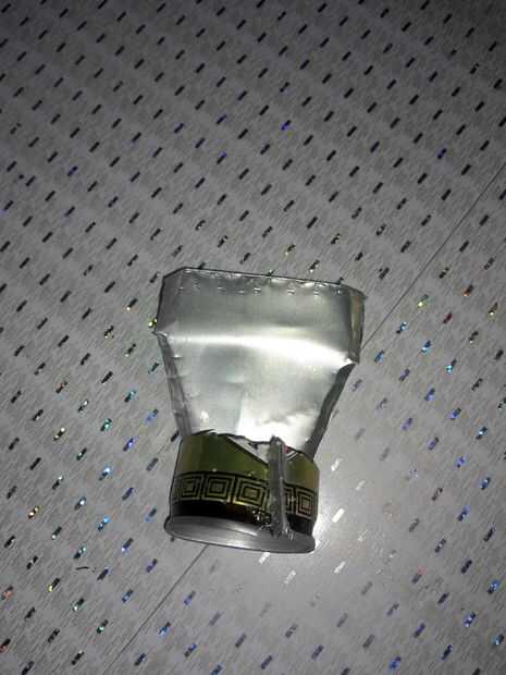 -Hacer un cono para el snozzle punta pequeña. Tamaño del extremo más pequeño es de libre elección. Prefiero 2 cm de diámetro. Para mantener en forma correcta, ambos borde se doblan juntos