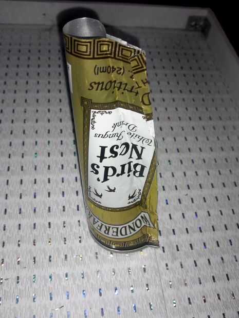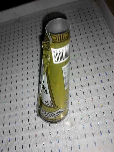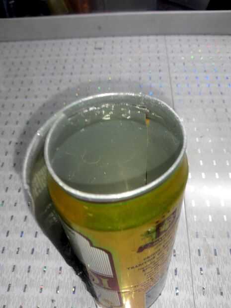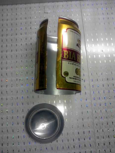 -En primer lugar, retire la tapa y el fondo de la lata luego cortar en la mitad. Debe mantener la parte gruesa de la parte superior para más tarde