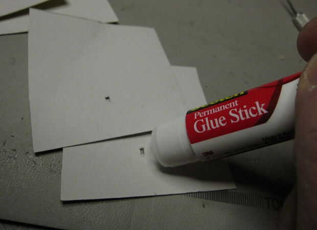 Entonces laminado las piezas usando un palillo del pegamento, alineando los agujeros en las parte superior dos piezas. Presione hasta que el palillo del pegamento ha fijado con los dedos o con un libro pesado.