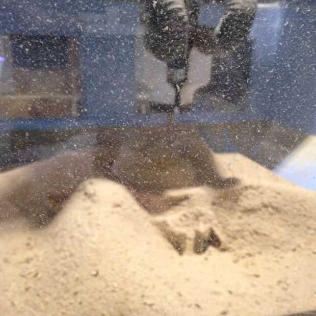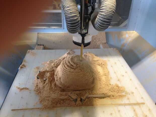 Tuve que hacer dos moldes MDF aproximadamente el mismo tamaño y forma, con ligeras variaciones. El primer molde que hice comenzó con un stock MDF laminado estándar en un bloque grande. Corte que cada rebanada tomó aproximadamente una hora y luego el glueup otras dos horas y requiere un montón de pegamento, sujeción y elevación de cargas pesadas. La acción pesó cerca de 70 libras y así que necesitaba gente para levantarlo para colocarlo en el router de 5 ejes DMS. Luego tomó otro 10 horas a Inicio de molino para terminar!