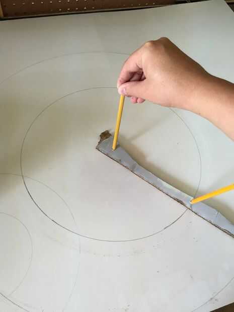 Ahora, coloque el cartón donde desee dibujar el círculo y poner un lápiz en cada uno de los agujeros. Sostenga un lápiz constante mientras la otra utiliza para dibujar el círculo.