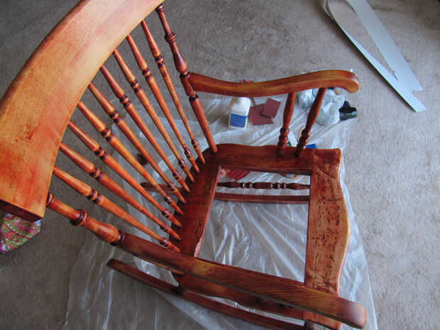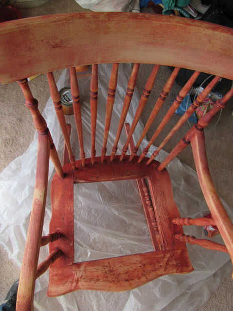 Porque esta silla ha sido objeto de un número indeterminado de capas de tinte, barniz, y lo que sea más, quería que la madera (que me enteré de que cerezo) para brillar sin cualquier color falso. Algunas investigaciones me dijeron que cerezo tiende a ser muy manchada, especialmente a medida que envejece, pero pensé que sólo añadiría a la personalidad de la silla. No sólo es la bonita cereza, pero no quería cubrir la madera que me tomó edades para exponer!