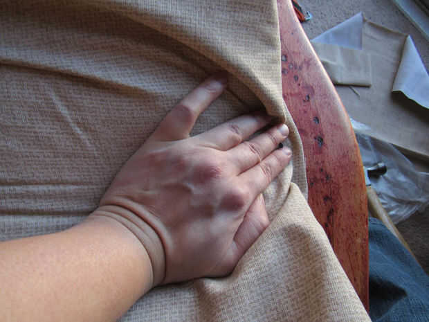 Una vez más estoy tratando de recrear cómo fue tapizado el asiento ya que presté atención, estaba destrozando.