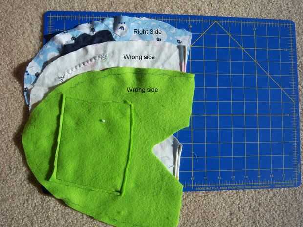 * Después de coser revés del tirón la manopla! Al revés los bancos Asegúrese de que las piezas de dos franela terminan en el exterior.