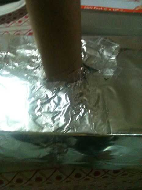 Corte un pedacito de la hoja en la parte inferior, luego el tubo a la caja usando cinta adhesiva de la cinta. Cinta o vuelva a colocar la hoja que fue recortar alrededor del tubo.