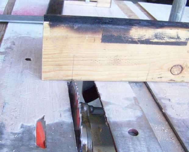 He hecho una línea donde quiero el lado izquierdo (como se ve) del dado que, y he alineado con la hoja de sierra para el corte de la lámina dentro de la ranura.