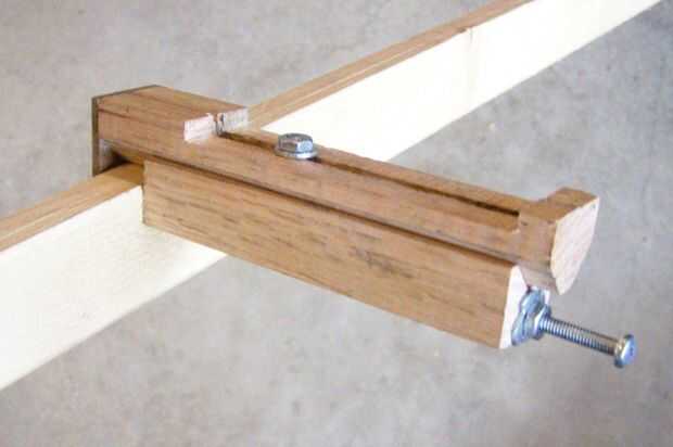 Usted está haciendo una ranura para caber de cerca alrededor de un estante o una grapa. Ajuste el kerfmaker a la madera para la plataforma o la Cala. Apriete la tuerca de ajuste con los dedos. Sin permitir que nada para salir del ajuste, apriete la tuerca de ajuste un poco más con un alicate. (Realmente no hay espacio suficiente para una tuerca de mariposa.)
