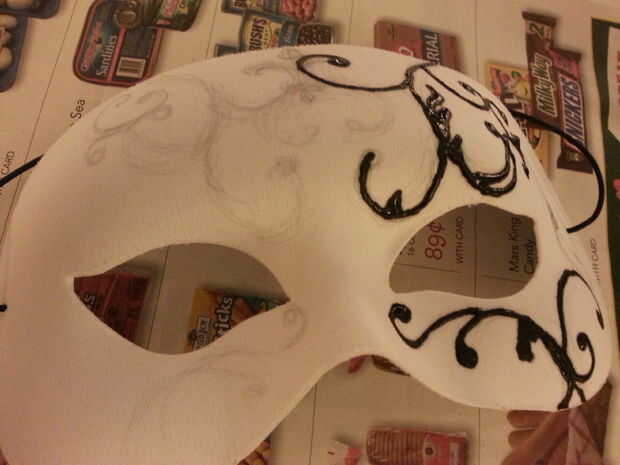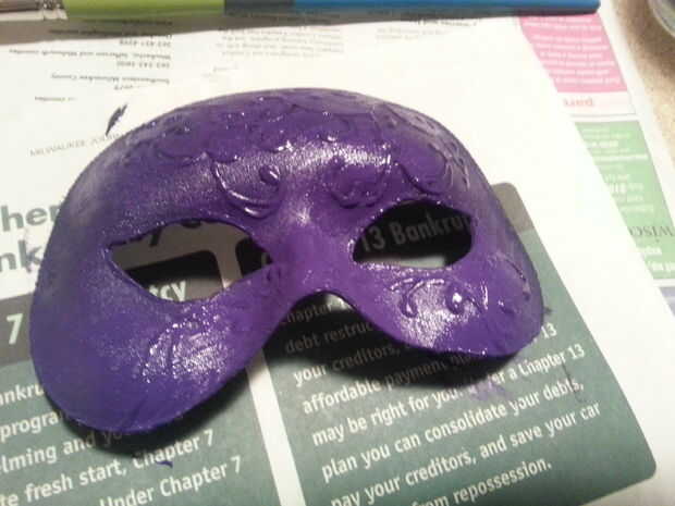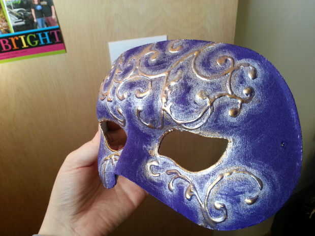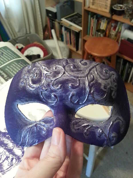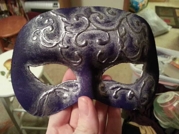 esta máscara pintada a mano utiliza una máscara de arte como la base. Están disponibles en muchas formas en tiendas de artesanía y los minoristas en línea - use cualquier forma que te gusta. Si escoges uno que es de plástico brillante, pintar con una capa base de Gesso antes del primer paso. En primer lugar, dibujar su diseño directamente en la máscara usando lápiz. Fui de arabescos y Myrtale orgánica. En otras palabras, compone. No te preocupes si cambias de parecer como ir - el lápiz no se mostrará en la parte final. A continuación, trazar su diseño en pintura dimensional - el tipo de los utilizados en las camisetas. El color no importa, como no mostrar a través de. Me ha pasado a tener negro, eso es lo que usé. También puede hacerlo con una pistola de pegamento caliente, pero creo que es un poco más difícil de controlar y obtener menos precisión. Aquí he añadido una segunda capa de pintura dimensional después de secado el primero para dar mi diseño más altura. A continuación, retire el elástico de su máscara. Pintar la máscara de toda en su color de base elegido. Asegúrese de obtener todos los rincones y grietas. Elegí de acrílico del artista en Dioxazine púrpura para una mayor cobertura. Si es necesario, aplique una segunda capa con el color base. A continuación, pintar alrededor de los bordes del diseño relieve en plata. Aquí aproveché la pintura de embarcaciones más ligera para que algunos púrpura se muestra a través de. Un pincel con una punta estrecha da más control, pero puede trabajar cualquier cepillo que tienes en la mano - sólo puede dar un aspecto ligeramente diferente. Si su pintura es también pensar, diluirla un poco. Aplique una segunda capa de plata, si lo desea. A continuación, aplicar Rub n Buff (una pasta metálica de cera) a la superficie del diseño. Aplique una pequeña cantidad sobre la yema del dedo y frotar suavemente por toda la superficie levantada. He utilizado oro antiguo. También pueden utilizar pintura acrílica y un pincel pequeño. Por último, sellar con un sellador acrílico transparente spray, disponible en tiendas de mejoras para el hogar (no en la foto.) y arte