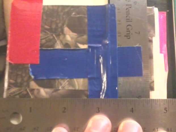En mi mesa de redacción tengo una regla grabada para ser un poco menos de 4-1/2" del borde. En lugar de recortar exactamente la ductape fabricado para ser 9" doble en slideit mitad luego me bajo la regla y cinta hacia abajo, luego finalmente cortarla hasta el tamaño correcto. De esta manera reduce el tiempo y esfuerzo al corte de nuevo los bordes después de que se dobla y casi totalmente montado.