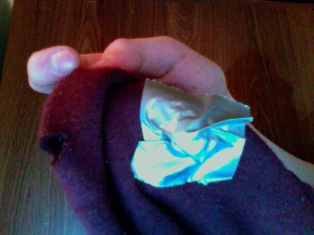 Poner nuestra sudadera con capucha y hacer una nota mental de donde son sus oídos. por otra parte, cortar dos agujeros allí. con los dedos tiran a través de donde están los agujeros de la "v" a donde están sus oídos. Si los auriculares están sueltos y usted siente que podría caer hacia fuera, coloque algunos cinta adhesiva sobre los orificios para hacerlos más pequeños. y por último lugar cinta sobre los auriculares con el fin de impedirles moverse y mantenga los más ocultos. (este paso es opcional pero lo recomiendo.