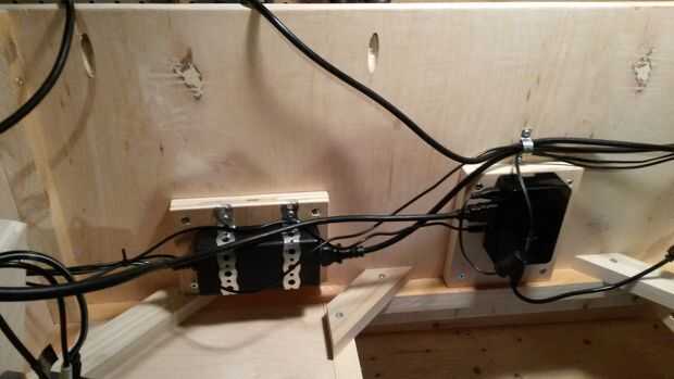 - Pasé algún tiempo haciendo gestión de cables con un montón de consolas de alambre que compré en la ferretería. Esto no es una necesidad, pero me gustaría mantenerla aseada y ordenada.