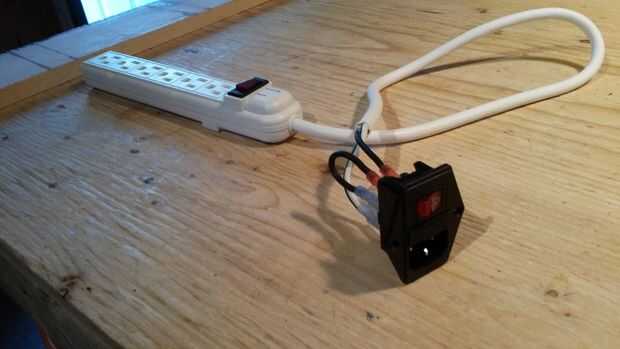 - No cabe duda de que su mesa arcade va a tener unos cables que lo atraviesa. Muchos de los cables van a ser los cables de alimentación suministra energía a los componentes múltiples: monitor, altavoces y el Raspberry Pi. Quería tener un solo interruptor que enciende la tabla entera (los tres componentes). Compré una barra de energía barata, cortar el extremo del enchufe y cable hasta un conector de módulo de entrada. Para ello compré un conjunto de terminales de alambre y había agregado conectores adecuados a los extremos de todos los cables pelados de la barra de energía. Se trata de que estamos hablando de electricidad - así que esto no es algo querría hacer medias. Cableado para arriba no era demasiado difícil (ver fotos para consejos) y hay un montón de referencias sobre cómo hacerlo online. Al final que tienes una barra de energía que se enciende por una película de un interruptor - que da vuelta sobre mi mesa todo arcade.
