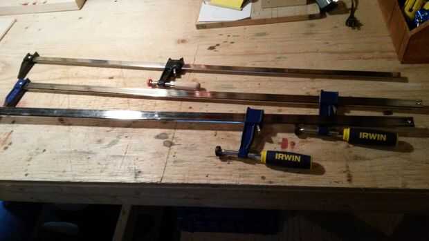 - Abrazaderas - muchos de ellos. Tengo un montón de apretones rápidos, varias abrazaderas en C, y tres de largo barra abrazaderas (los grandes) y hubo momentos cuando estaba con todos ellos a la vez.