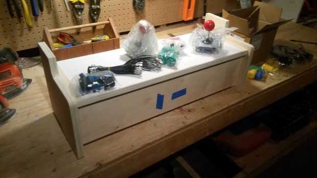 En ese momento salté a derecho en la construcción de la caja que albergará los botones y palancas de mando. Yo llamo a esto la caja de control de joystick. En mi diseño se trata de una caja que sobresale fuera de la tabla en el lado del jugador. Algunos pensamientos y consejos: