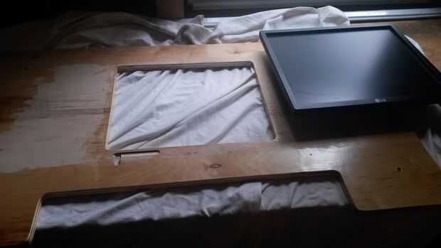 Tras completar el acabado podemos añadir al monitor a la tapa de tabla: