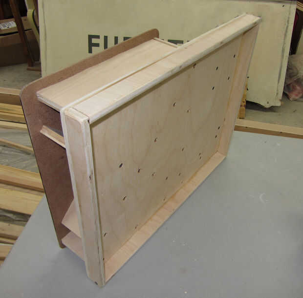 Yo podría probablemente han salido con solo usar un pedazo de madera contrachapada para la base, pero he optado dar un labio corto de madera contrachapada en la parte inferior para la fuerza adicional y para evitar que la pieza principal de capas de deformación con el tiempo. Usé 1/2 capas, que es más que suficiente cuando reforzado como ves en la imagen.