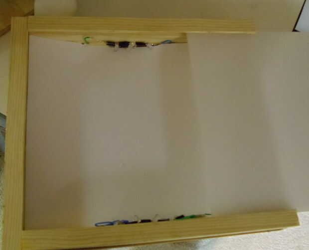 usando una superficie blanco curveada dentro de la caja muy corta hacia abajo de la superficie total que debe ser iluminada mientras también lo que le permite ocultar las baterías dentro de la caja.