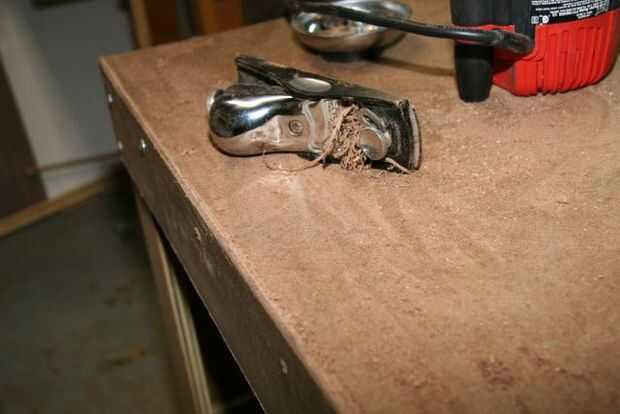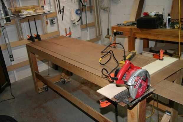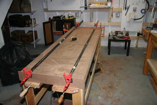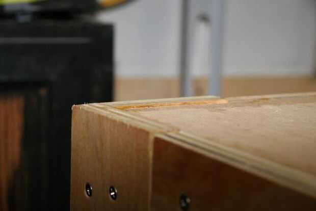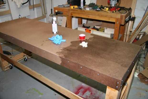 A continuación, cortar unas tiras de madera, atornillado - pero no pegar en los delantales, entonces enrutados para coincidir con la parte superior de la tabla. Al final, la parte superior de la madera se sujeta mecánicamente, sin tornillos o pegamento.