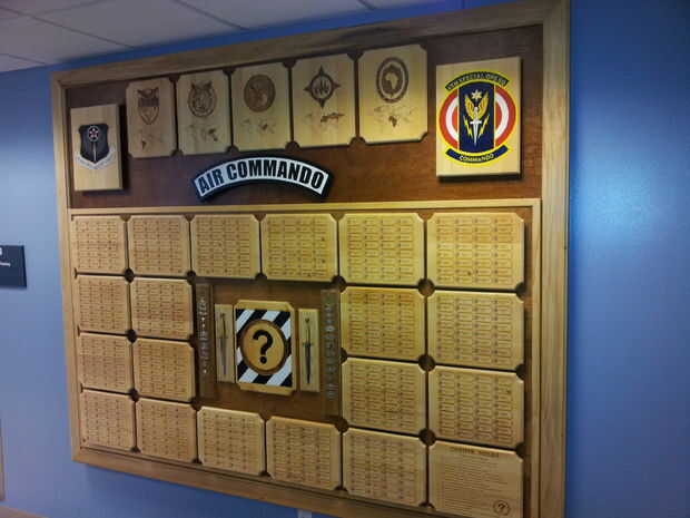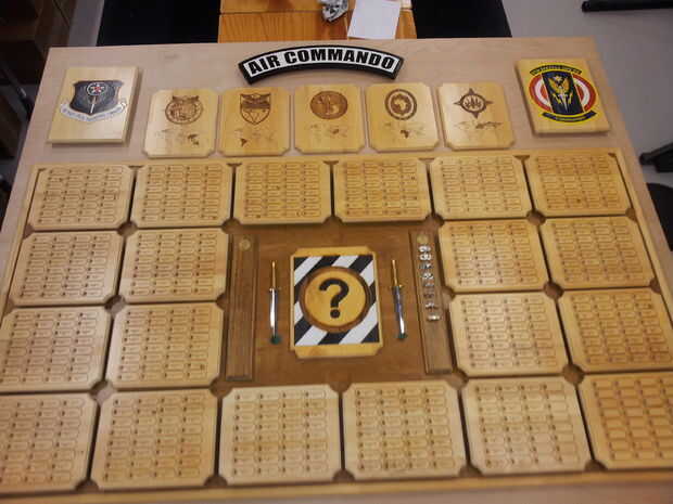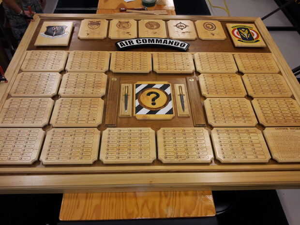 Mi idea era de que todos tienen su nombre, rango y número en una etiqueta de perro (militar) y tenerlos en orden secuencial. La idea de etiqueta de perro funcionó bien, excepto porque en lugar de cada uno tener su propia etiqueta de perro gratis flotante, decidí la forma de la etiqueta de perro a la madera del laser. Esto garantizaría no conseguirán perdidos y pude obtener 32 nombres de cada pieza de madera. También, para darle un poco más patrimonio añadido el emblema de comandantes a todos aquellos que alguna vez fueron el comandante de la unidad y allí que hemos perdido a dos miembros de nuestra unidad desde 1994 durante las operaciones, la etiqueta también se fija con el emblema de soldados caídos.