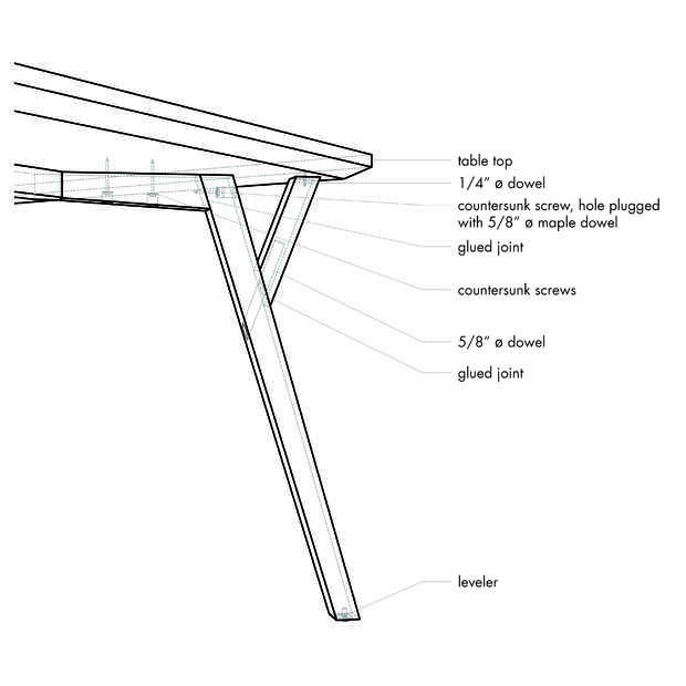 Cuántos de Rhino para diseñar la mesa y elaboró la cantidad de madera necessária. Luego, traducimos todos los elementos un 2D para usarlos como referencia en el taller. También creamos plantillas a escala real de cada una de las patas de la mesa.