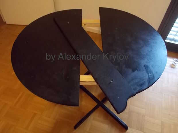 La anchura y la altura de las extensiones dependen de la anchura y la altura de la tabla se extienda. En mi caso el ancho es de 90 cm, la altura es de 74 cm. La parte media de la tabla podría hacerse más amplia; en este caso, los radios de la transición de la parte media a las extensiones de ambos deben ser diferentes, para obtener una curva suave.