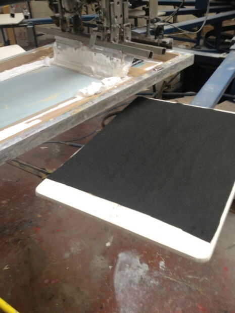Un pedazo de feIt puede presentarse luego en la parte posterior de la máquina. Primero se coloca en una placa que se mueve automáticamente a través y debajo de la plantilla (imagen 3). Entonces se levanta para hacer una conexión firme contra la parte posterior de la plantilla.