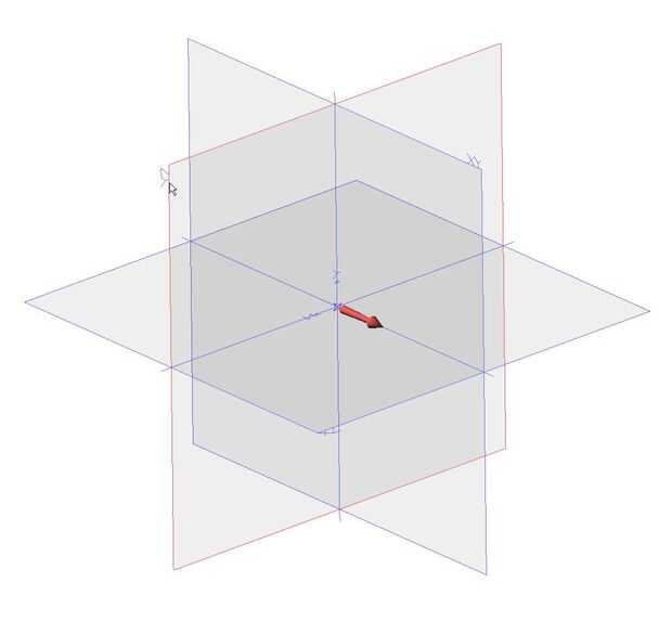 Abra una nueva pieza. Seleccione la vista isométrica. El plano YZ se muestra contorneado en rojo. Este es el plano que queremos insertar nuestro perfil en.