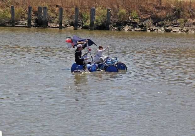 A veces cuando construyes algo que no funciona como previsto y este fue uno de aquellos tiempos. Podríamos seguir trabajando en él y ver si podemos hacer que funcione pero ambos decidimos hace una bicicleta mejor que un barco. Tuvimos un gran tiempo construirla y genial lo de carreras y ser parte del evento y eso es lo que se trataba. Incluso hemos recogido algunos aficionados que aclamaron para nosotros mientras caminamos por. Cuando hemos sido capaces de pedel la moto evento fue con un sentido de logro para intentar algo nuevo y tener un buen rato haciéndolo.