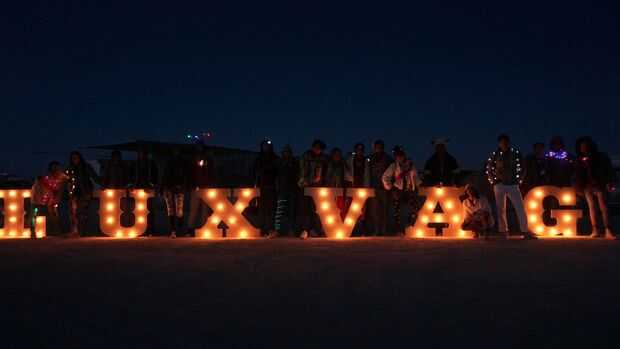 Mi campo de hombre ardiente quería una muestra grande, iluminada para anunciar nuestra presencia en la playa y atraer a los quemadores para usar nuestros servicios: falso tatuaje y deslumbrantes.