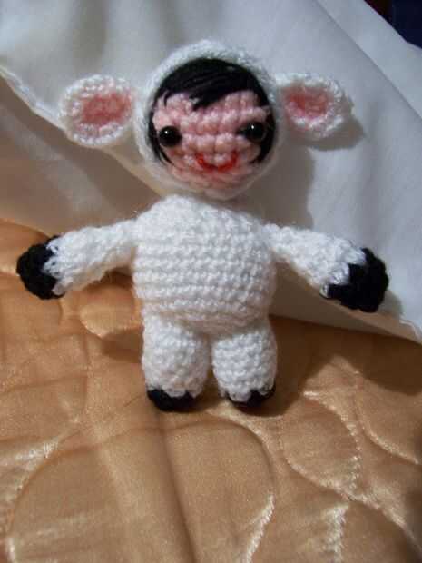 Hi. Este es el proyecto que hice hoy, es una muñeca y se viste como un cordero. Me inspiré en una página que tienen no los patrones, luego vi los amigurumis y trató de inventar mi propio patrón. En el primer tiempo, yo pensaba que era imposible para mi inventar un patrón, pero es un poco diferente del que vi.