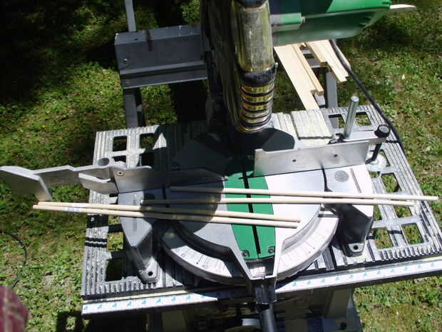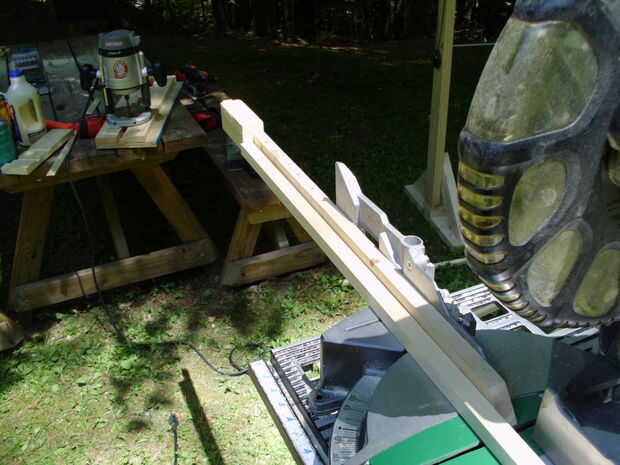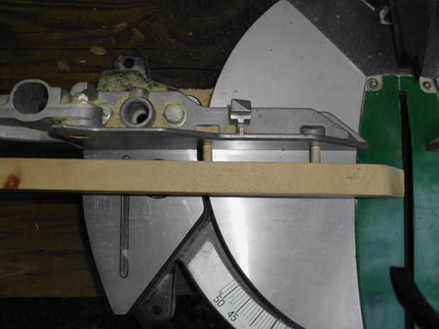 Con inglete todavía para ángulos de 90°, corte 4 piezas aproximadamente 16" a 18" de largo. Estos se utilizarán para los refuerzos en los lados de la silla y se recortará para arriba más adelante a la longitud exacta necesitada.