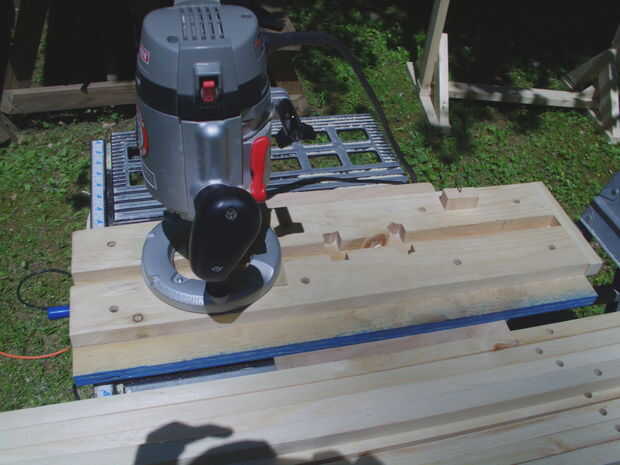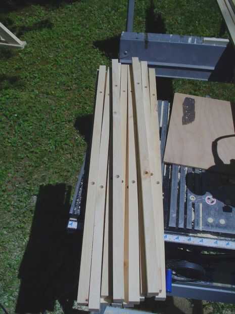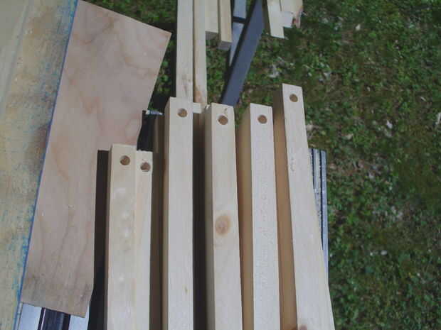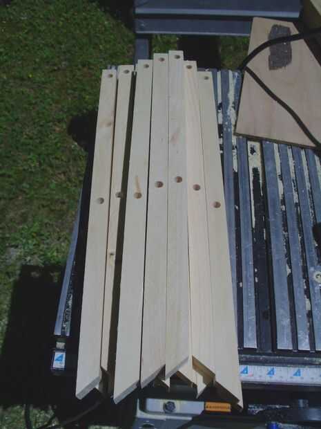 Las piezas de asiento Haz los orificios perforados de 7/16" y 8 3/16" desde el extremo cuadrado. La plantilla que utilizo tiene una parada de móvil para que yo puedo perforar 17of todos primero, mueva el tope y todos 17 de los últimos agujeros de taladro.