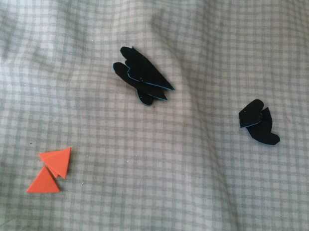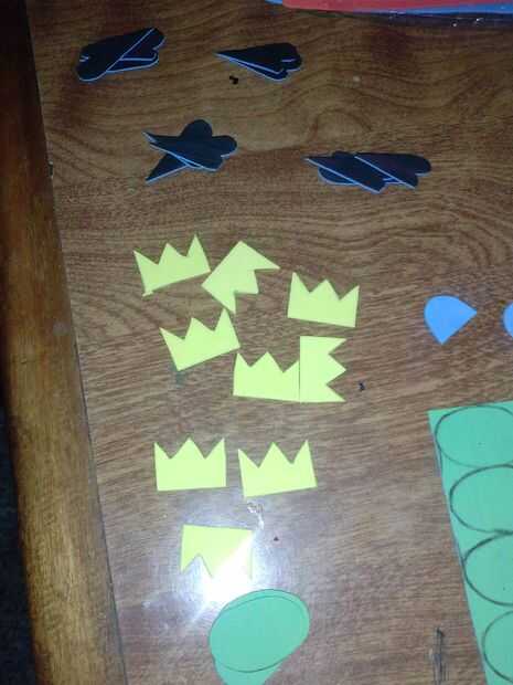Dibujar formas de plumas, orejas, nariz, coronas o picos y utilizarlos como plantillas para el cuerpo de las aves. En las fotos son las orejas de nariz de cerdo y corona así como las aves de pico y plumas