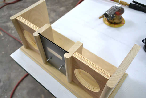 Los frentes de los cuatro paneles verticales fueron formados usando un 3/8" redondo sobre router bits a cada lado para crear un redondeo completo medio, después de que hace un poco de lijado con lija de grano 220 para un acabado liso. Las dos interiores verticales fueron ranuras con una sierra de mesa para el panel frontal entre ellos.