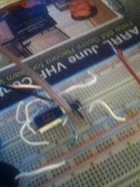 El cableado para esto es muy simple y un muy buen proyecto soldado primero o segundo. Si se utiliza un display de siete segmentos, buscar el pinout y conectar el cátodo a tierra y los pares de líneas verticales parte superior e inferior. Conecte va desde cualquiera de los extremos (línea superior, par superior de líneas verticales, línea media, par de fondo, línea de fondo) a attiny pernos 8,7,6,2,3, respectivamente. Dibujo un poco cableado diagrama como se muestra arriba generalmente ayuda, ese diagrama es para el display de 7 segmentos que venden en RadioShack. Para regular LED, conecte todos los negativos y ejecutar cada positivo a los pines 8,7,6,2,3, en ese orden. Cada uno dará una salida binaria de 5 bits proporcional a la tensión de la batería. Binario se utiliza para aumentar la resolución por un factor de cerca de 5 (32 valores posibles en lugar de 6 Si sólo aparece el valor secuencialmente).
