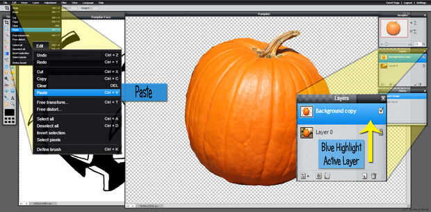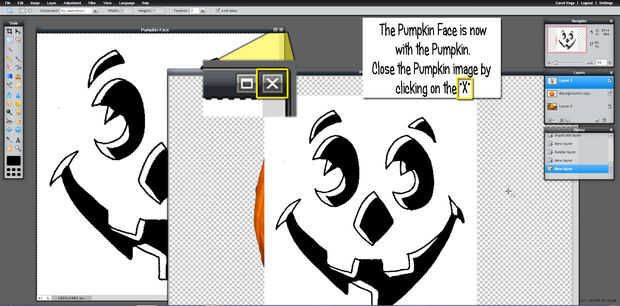 Ahora la cara de la calabaza es una capa en el archivo de calabaza.