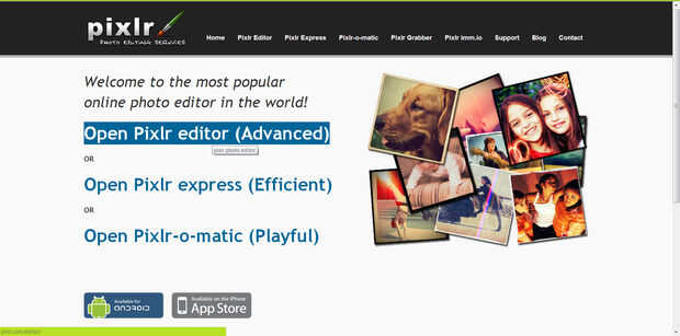 En la pantalla de introducción de elegir abierto Pixlr editor (avanzado).