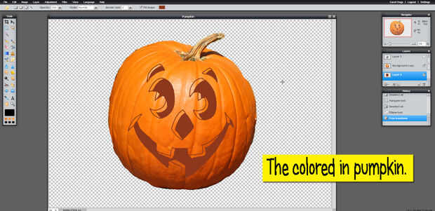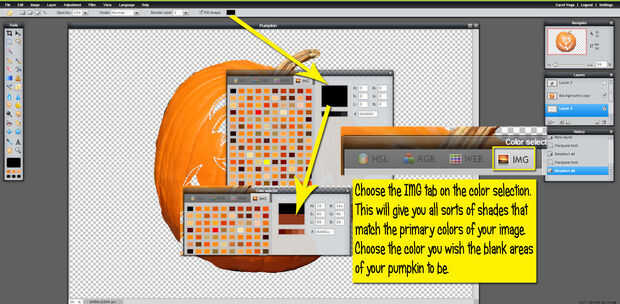 Una vez que elige su color, se le "arrastrar" la imagen de un círculo a través de las aberturas de la calabaza. El círculo se llenará cualquier color usted elija.
