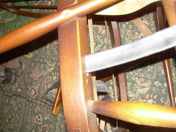 se trata de una vieja silla de un conjunto que compré para barata en una venta de garaje un tiempo atrás. Parece que alguien intentó arreglarlo pero parece muy endeble. Decidí parche encima de mí y darle una nueva capa de pintura.Herramientas necesar