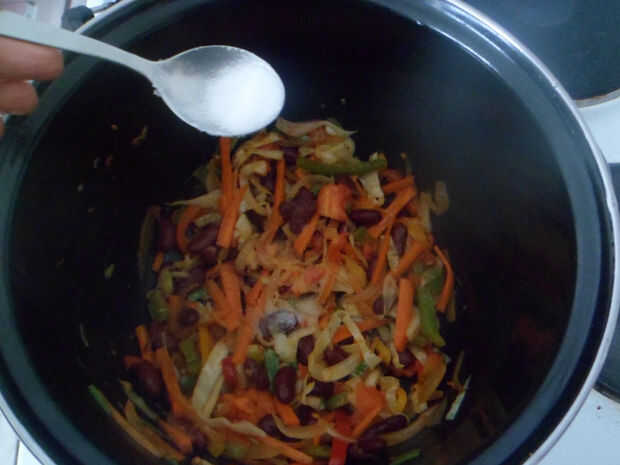 -Añadir los frijoles y sal.
