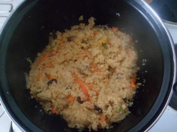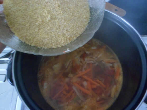 -Cuando el agua llega a hervir agregar el couscous y mezcla lentamente.