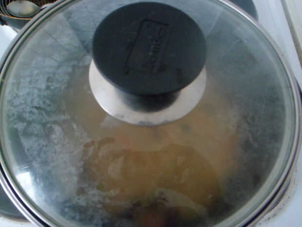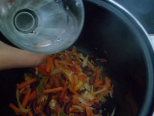 -Agregar unas 4 tazas de agua y hierva por el cierre de la tapa. También puede usar caldo de vegetales en lugar de agua.