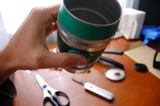 1. evaluar dónde poner el sugru para facilitar el bote cuando está caliente. Mis dedos caben muy bien en los lados opuestos de la can.
